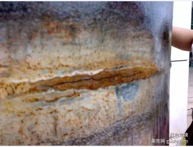 磁粉檢測裂紋缺陷示意圖,球罐的環(huán)形對接焊縫,磁痕粗大明顯。