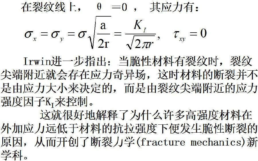 (2-21)、(2-23)式便是現(xiàn)代線性斷裂力學的理論基礎。