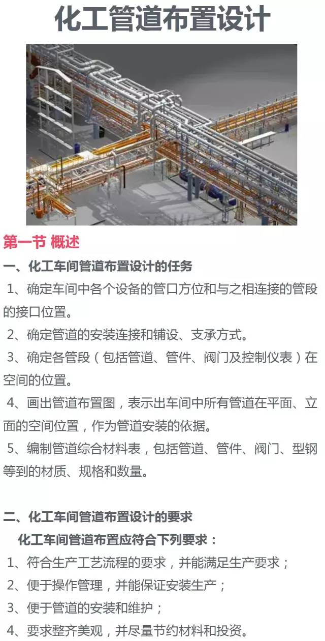 對于管道布置,今天給大家主要介紹的是管道布置的任務與要求,管架、管道的安裝布置,以及需要熟悉設備的管道布置、以及管道布置圖的畫法。