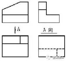 (3)斜視圖應盡量配置在箭頭所指的方向,并與斜面保持投影關系.為了作圖方便和合理利用圖紙,也可以平移到其他適當的位置.在不致引起誤解時,允許將圖形旋轉,使圖形的主要輪廓或中心線成水平或垂直位置.經過旋轉的斜視圖,必須在斜視圖上標注,如“A向旋轉”。