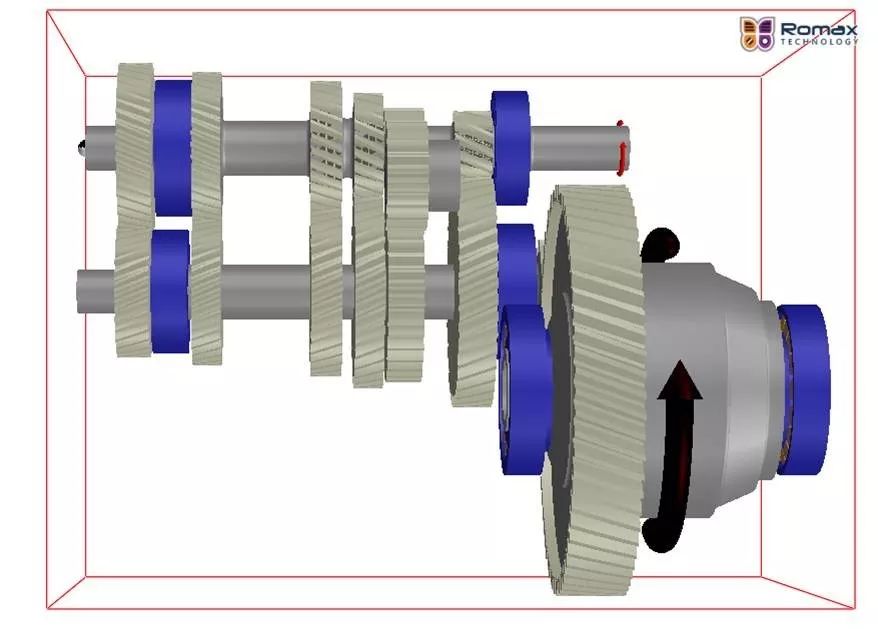圖3為我公司MA型手動變速箱的軸承位置示意圖(見圖中藍色標記部分),其中在一軸一擋位為深溝球軸承25D52E15,一軸五擋位為深溝球軸承25D62E17,二軸一擋位為圓柱滾子軸承32D62E16,二軸五擋位為深溝球軸承22D57E17。
