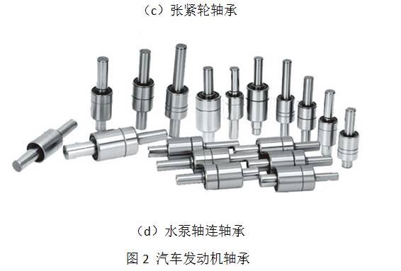 發(fā)動機是汽車的心臟,源源不斷為其他部件提供動力。內部軸承先前以滑動軸承占主導,目前多數(shù)在改進軸承性能的前提下,采用密封球軸承,圖2為發(fā)動機中的幾種典型軸承。