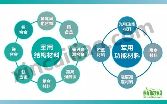 軍用新材料按其用途可分為結構材料和功能材料兩大類,主要應用于航空工業、航天工業、兵器工業和船艦工業中。