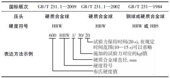 表2 布氏硬度壓頭和符號新舊標(biāo)準(zhǔn)對照