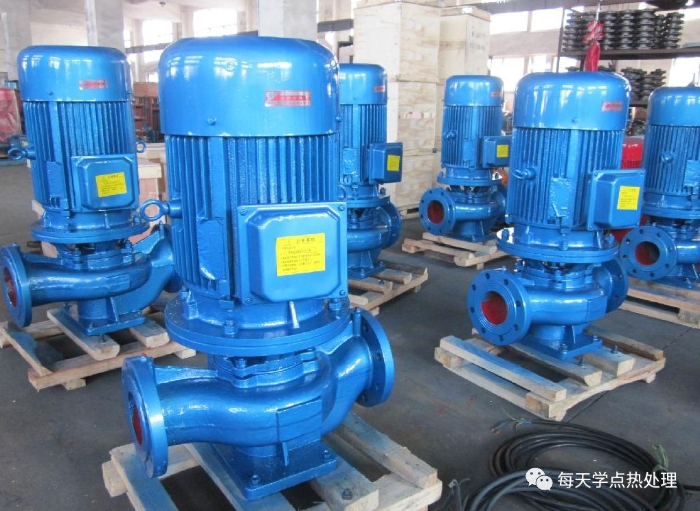 泵的性能除流量和揚(yáng)程外、主要注意泵的吸程和允許安裝高度。輸送熱水、熱油的泵有可能發(fā)生汽蝕現(xiàn)象,使泵不能正常工作溫度越高影響越大。為了避免發(fā)生汽蝕,熱處理冷卻系統(tǒng)的泵一般安裝在淬火槽的下部。目前ISG型管道離心泵被廣泛采用,它集IS型 離心泵與SG型管道泵之優(yōu)點(diǎn)與一體,安裝簡單,價格低廉。ISG型適用的介質(zhì)溫度范圍為 -20~80℃。IRG型為立式管道熱水泵,適用于介質(zhì)溫度范圍為-20~120℃。需要特別指出的是,離心泵的選用不能富裕揚(yáng)程太多,否則,將使電機(jī)過載,降低其使用壽命。圖11 所示為ISG型管道離心泵實(shí)物圖片。