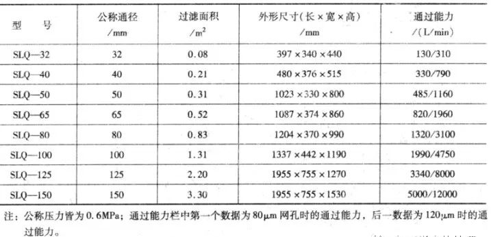 過濾器安裝在集液槽與泵之間,主要作用是隔離氧化皮、鹽渣等污物,保護(hù)泵和換熱器不會堵塞。常用雙桶網(wǎng)式過濾器,工作時一組過濾器投入運(yùn)行,另一組備用或清理,適用主機(jī)連續(xù)工作的特點(diǎn)。過濾器需要進(jìn)行清理時,只需操作換向手閥切換到另一個濾桶即可。表3 為SIQ系列過濾器的型號和技術(shù)規(guī)格,它所采用的的過濾網(wǎng)有80μm和120μm。對于熱處理冷卻系統(tǒng)過濾的工況,建議改成0.5×0.5 mm網(wǎng)孔的濾網(wǎng),可在淬火槽抽油口加裝一個1×1mm網(wǎng)孔的過濾網(wǎng)先濾掉尺寸較大的顆粒雜質(zhì)。