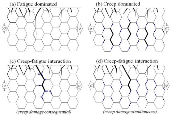 (c)蠕變-疲勞相互作用(由于“導(dǎo)致的”蠕變損傷累積);