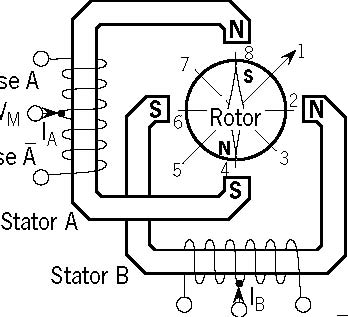 In Wave Drive only one winding is energized at any given time. The stator is energized according to the sequence A → B → A → B and the rotor steps from position 8 → 2 → 4