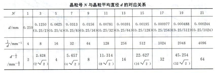 細化晶粒強化 常溫下,鋼的強度受基體組織的晶粒尺寸影響。通常用晶粒號(也稱為晶粒度或晶粒級別)來表示晶粒的平均大小。表中給出了晶粒號(N)與晶粒平均直徑d的對應關系