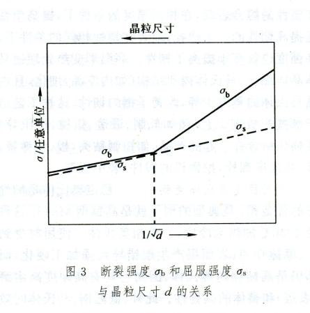 上述霍爾一佩奇關系式是一個普遍的關系式,它可作為流變應力與晶粒大小的關系(塑性材料),也可作為斷裂應力與晶粒大小的關系(脆性材料),還可作為疲勞強度與晶粒大小的關系。這一經驗關系式可由位錯塞積模型導出。當晶粒尺寸外推到4nm時,這一關系不再適用(工業中尚難達到這么小的晶粒。