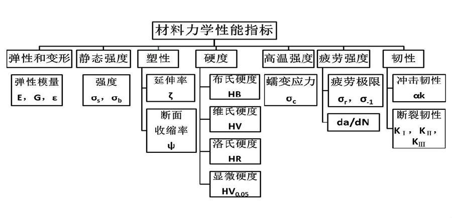 材料的力學性能是指在外力和環境等因素共同作用下抵抗變形和斷裂的能力。主要性能指標有: