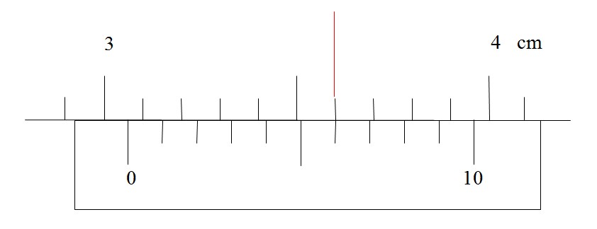 3、在主尺上讀出副尺零線以左的刻度,該值就是最后讀數的整數部分。圖示33mm。