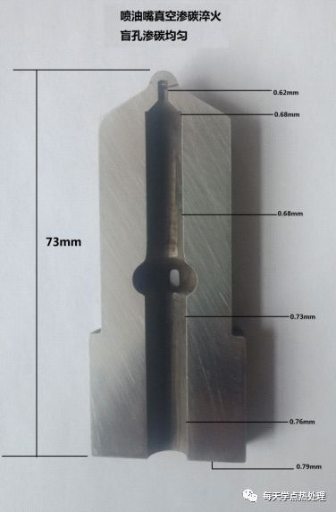 3、滲碳層深度更均勻:工件加熱完成勻溫之后,才通入滲碳?xì)怏w,保證了大小工件起始滲碳點(diǎn)的同步性,這是滲碳層均勻的基礎(chǔ)。真空對(duì)工件表面有凈化作用,有利于碳原子被工件吸附。由于滲碳層深度的均勻性好,使淺層滲碳更易于控制。
