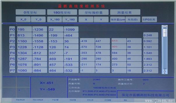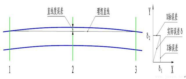 系統(tǒng)根據(jù)測頭1和測頭3采集的X軸方向位置值擬合一條直線,位置2的測量值與該直線的偏差即為位置2在X軸方向的直線度誤差。