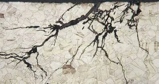 應(yīng)力腐蝕開裂是奧氏體不銹鋼最常見的破壞形式。大家需要注意,應(yīng)力腐蝕開裂取決于兩方面主要因素:其一,必須有應(yīng)力,它可能是外加應(yīng)力,也可能是殘余應(yīng)力;其二,應(yīng)力腐蝕開裂敏感離子,比如鹵族元素離子,尤其以氯離子最為常見。應(yīng)用奧氏體不銹鋼的地方,時常不是使用其承受應(yīng)力的能力,因此應(yīng)該特別關(guān)注殘余應(yīng)力,因?yàn)樵诤新入x子的環(huán)境中,殘余應(yīng)力會造成其應(yīng)力腐蝕開裂。去殘余應(yīng)力的方法是去應(yīng)力退火。