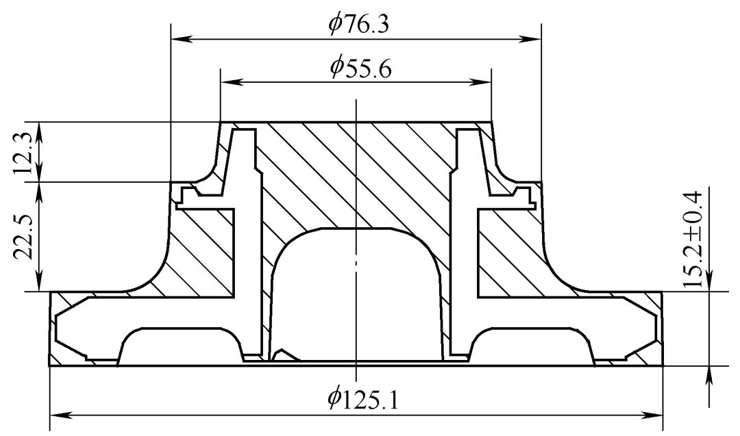 鍛件為倒檔齒輪,形狀如圖1所示,鍛件重量為1.9kg,硬度要求為149~170HBW(dB=4.60~4.90),材料為TL4227,具體化學成分見附表。