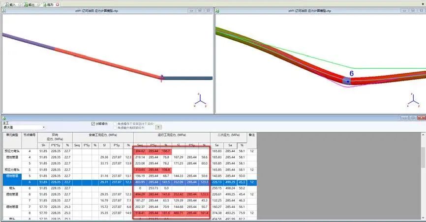 節點6熱態應力超標,而二次應力不超標,而熱態OPE應力超標。這個警告客戶軸向力擠壓和折角彎將要發生塑性失穩變形,起褶皺。這不是疲勞問題,不是我們平時考慮的二次應力問題。是折角彎失穩問題。