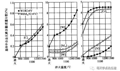 ▲圖3 高速鋼中合金元素含量與淬火溫度的關系