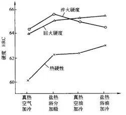 ▲圖9 冷卻方式對高速鋼熱硬性的影響