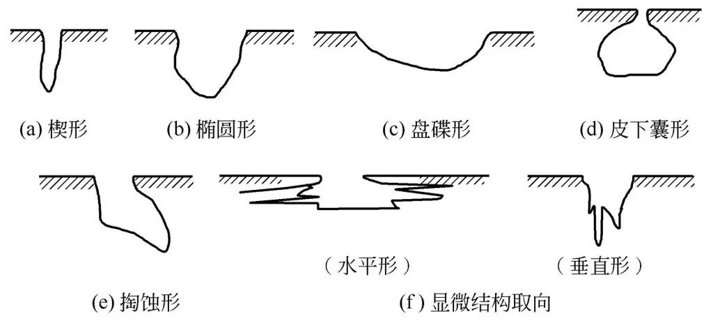 圖1 點(diǎn)蝕孔的各種剖面形狀(選自ASTM標(biāo)準(zhǔn))