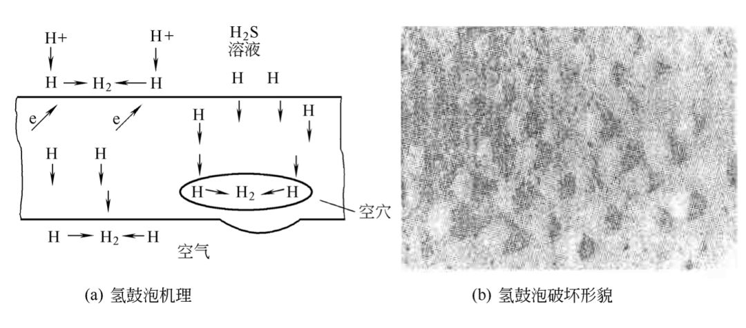 氫鼓泡需要一個硫化氫臨界濃度值。有資料介紹,硫化氫分壓在138Pa時將產(chǎn)生氫鼓泡。如果在含濕硫化氫介質(zhì)中同時存在磷化氫、砷、碲的化合物及CN-時,則有利于氫向鋼中滲透,它們都是滲氫加速劑。