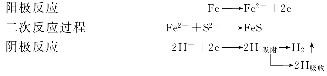 鋼在硫化氫水溶液中發(fā)生電化學(xué)腐蝕: