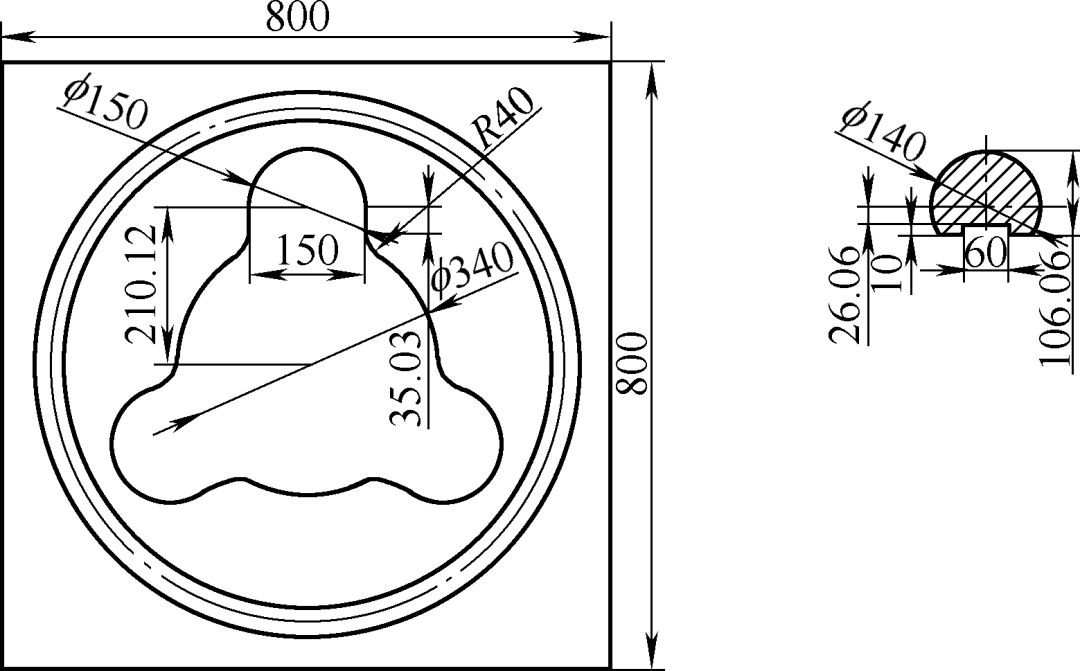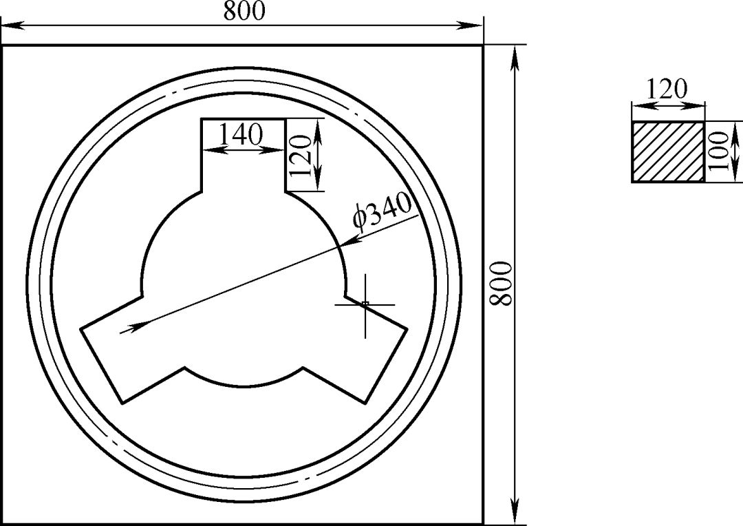 思路分析為:①電極可以直接提φ140mm的棒料,加工平面及銑槽,省略掉鍛打費(fèi)用,電極的成型費(fèi)用僅僅為機(jī)械加工費(fèi)用。