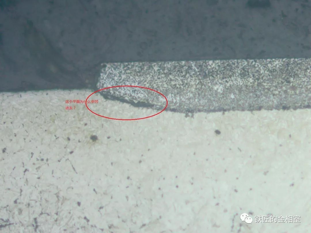 “ 你看,那層皮的外表面平平整整,幾乎是一條直線,和底下基體組織的分界線上呢,基體有明顯被壓入的痕跡,就是那個塌角,看到沒?這不難推斷出,皮是被壓到基體里去了,而且是整整齊齊地被壓入,哪個過程才能出現這種情況呢?”