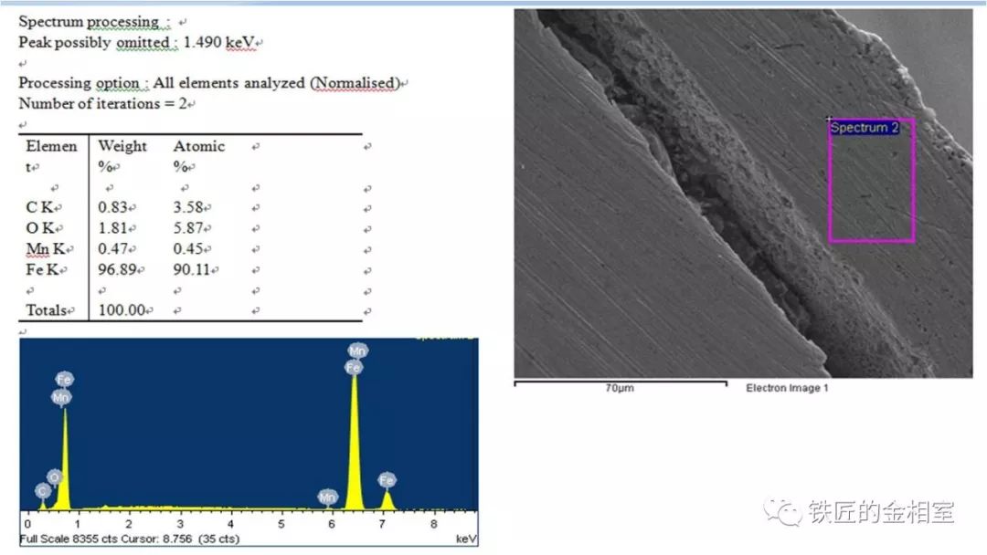 “想不明白啊,沒關系,你拿上這個樣去找大何,電鏡下做個EDS,分析一下這個皮和里面的組織在成分上有什么差異。”