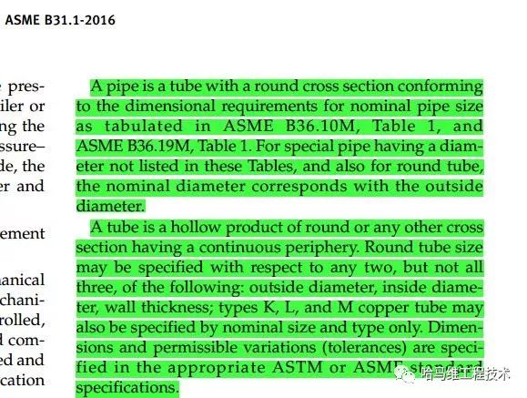 PIPE是一種符合ASME B36.10M 表格1 和ASME B36.19M的一種圓形截面TUBE.有一些不符合這些表格里面的尺寸的特殊的PIPE,以及圓形TUBE,名義外徑對應實際外徑.
