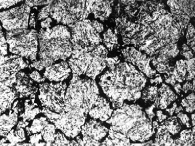 C、回火索氏體:是高溫回火(500~650℃)組織。回火索氏體是鐵素體與較粗的粒狀滲碳體所組成的機械混合物。碳鋼回火索氏體中的鐵素體已經通過再結晶,呈等軸細晶粒狀。經充分回火的索氏體已沒有針的形態。在大于500倍的光鏡下,可以看到滲碳體微粒(如圖10所示)。回火索氏體具有良好的綜合機械性能。