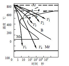 鐵碳相圖能說明慢冷時合金的結晶過程和室溫下的組織以及相的相對量,C曲線則能說明一定成分的鋼在不同冷卻條件下所得到的組織。C曲線適用于等溫冷卻條件;而CCT曲線(奧氏體連續冷卻曲線)適用于連續冷卻條件。在一定的程度上可用C曲線,也能夠估計連續冷卻時的組織變化。