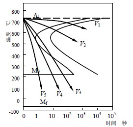 因此,v1的組織為鐵素體+珠光體;v2的組織為鐵素體+索氏體;v3的組織為鐵素體+屈氏體。