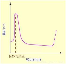 (2)預先變形度 變形度的影響主要與金屬變形的均勻度有關(guān)。變形越不均勻, 再結(jié)晶退火后的晶粒越大。變形度很小時,因不足以引起再結(jié)晶,晶粒不變。當變形度達到2~10%時,金屬中少數(shù)晶粒變形,變形分布很不均勻,所以再結(jié)晶時生成的晶核少,晶粒大小相差極大,非常有利于晶粒發(fā)生吞并過程而很快長大,結(jié)果得到極粗大的晶粒。使晶粒發(fā)生異常長大的變形度稱作臨界變形度。生產(chǎn)上應盡量避免在臨界變形度范圍內(nèi)的塑性變形加工。超過臨界變形度之后,隨變形度的增大,晶粒的變形更加強烈和均勻,再結(jié)晶核心越來越多,因此再結(jié)晶后的晶粒越來越細小。但是當變形度過大(約≥90%)時, 晶粒可能再次出現(xiàn)異常長大,一般認為它是由形變織構(gòu)造成的。