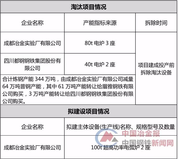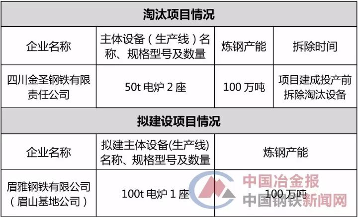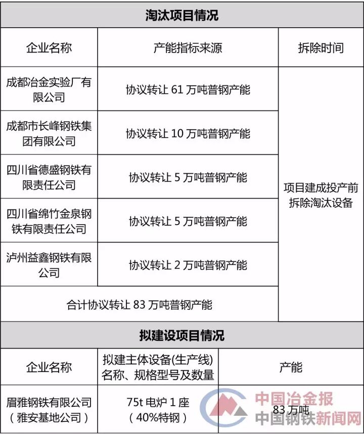 這兩家企業分別通過減量5萬噸產能,置換重組為四川圣德鋼鐵有限公司(暫定名),減量的10萬噸產能轉讓給眉雅鋼鐵有限公司(雅安基地公司),其余產能全部用于此次置換。