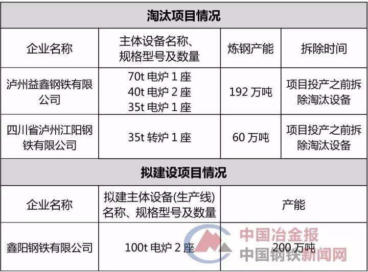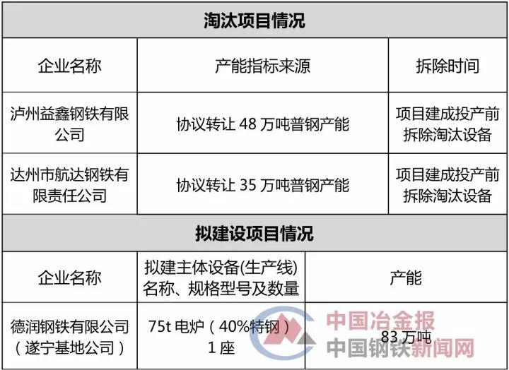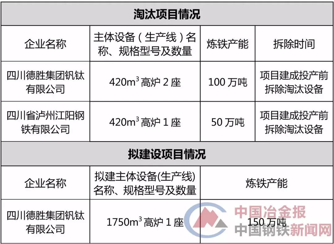 瀘州益鑫鋼鐵有限公司48萬噸煉鋼產能轉讓給德潤鋼鐵有限公司(遂寧基地公司),2萬噸煉鋼產能轉讓給眉雅鋼鐵有限公司(雅安基地公司),2萬噸煉鋼產能直接淘汰,其余產能全部用于此次置換;四川省瀘州江陽鋼鐵有限公司50萬噸煉鐵產能轉讓給四川德勝集團釩鈦有限公司,其余產能全部產能用于此次置換。