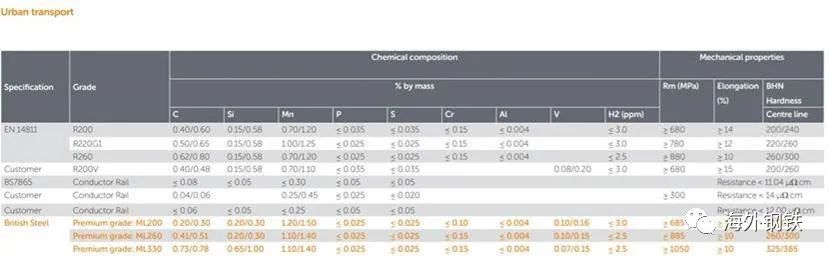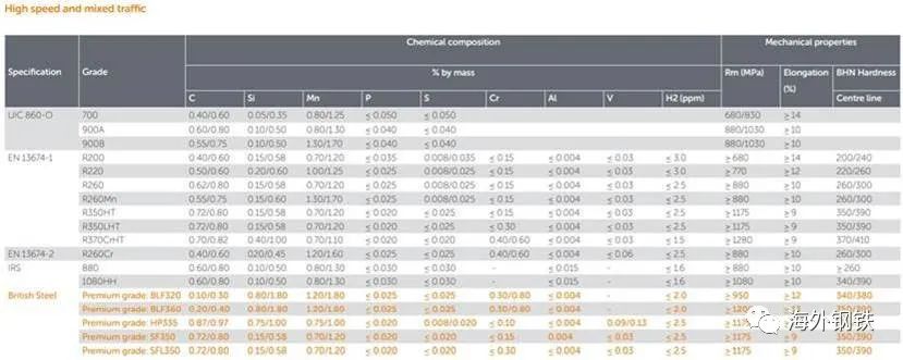 (5)BLF(BainiticLowFatigue)系列。貝氏體低疲勞鋼軌(BLF),即使在極端密集的交通密度和惡劣的條件下,也能提供優(yōu)異的抗?jié)L動接觸疲勞。有兩個等級,BLF320和BLF360,所有新的法國高速鐵路現(xiàn)在都使用BLF鋼軌。