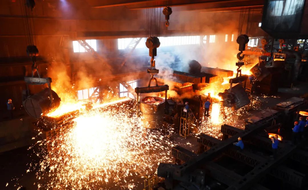 5臺電爐同時熔煉,6架行車協同配合,8個鐵水包傾瀉而下……近日,濟南二機床140噸超大灰鐵鑄件澆注成功,并順利通過用戶預驗收,這是繼今年完成120噸床身球鐵澆注后,刷新的又一企業紀錄,“工業之花”再一次璀璨綻放!