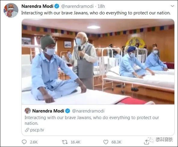 莫迪看望加勒萬河谷沖突中受傷的印軍士兵 莫迪推特截圖