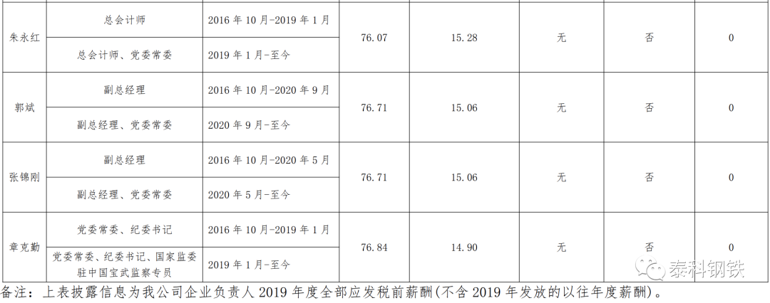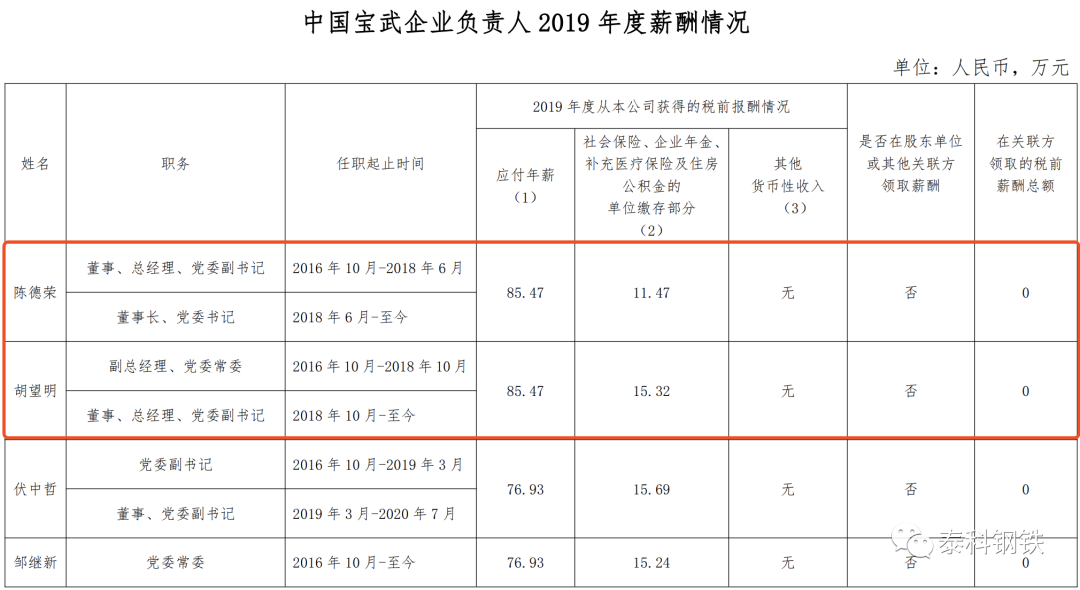 2020年12月底,中國寶武、鞍鋼、五礦、中鋼集團、中鋁集團、新興際華、中國鋼研等鋼鐵冶金行業相關央企負責人2019年度薪酬情況陸續公布,具體薪酬表如下: