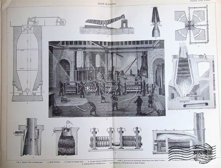 據史料記載,從公元前1世紀起在德國境內就有了煉制生鐵的記錄。隨著第一次工業革命的興起,各種新的生產交通工具的發明對鋼材需求量急速增加,直接推動了鋼鐵工業的發展,各種新式煉鋼法也紛紛問世。19世紀初攪煉法被引入德國,開啟了德國現代鋼鐵工業的序幕。
