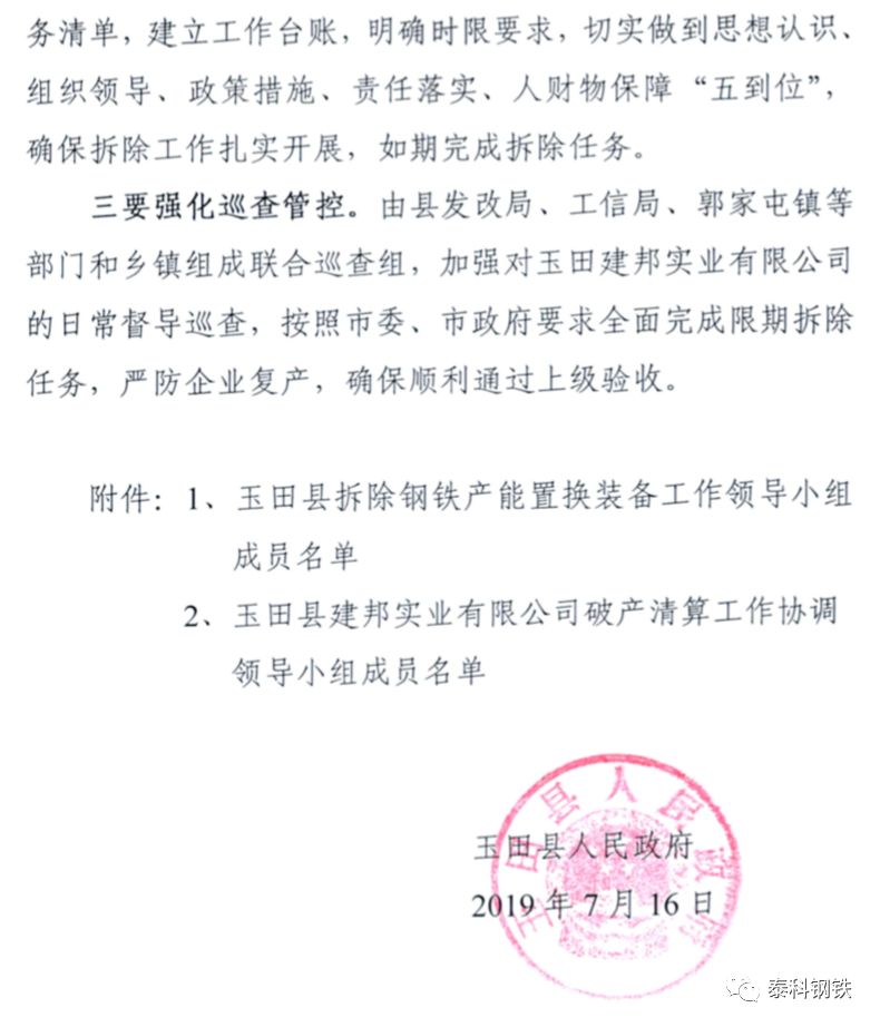 16、唐山玉田建邦實業2020年前全面完成破產清算