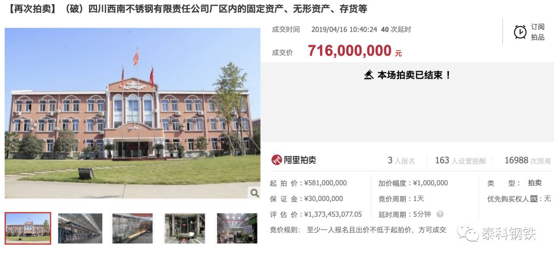 20、西南不銹破產資產拍賣,成都恒瑞興宇實業有限公司以7.16億元競得