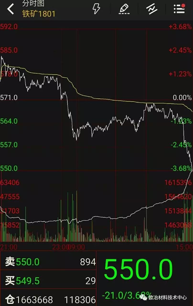 隨著鋼廠“高爐爆炸”謠言的揭穿,而鐵礦石產(chǎn)能增加,黑色系利好消息出盡,已處高位的鋼鐵、鐵礦等大宗商品集體下挫,其中螺紋1801下跌102,跌幅2.5%,而鐵礦1801跌幅則高達(dá)3.68%。