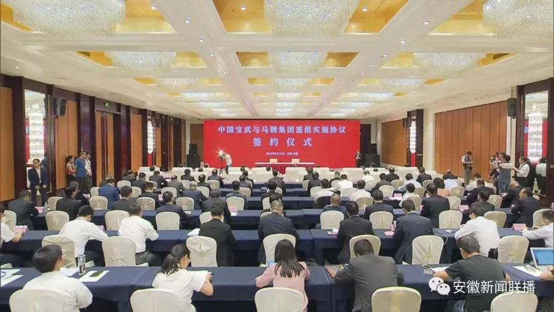 2019年9月19日下午,中國寶武與馬鋼集團重組實施協議簽約儀式在合肥舉行。省委書記、省人大常委會主任李錦斌,國務院國資委黨委書記、主任郝鵬,省委副書記、省長李國英,省委副書記信長星等見證簽約。