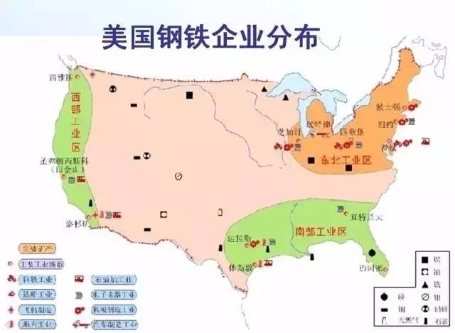 美國鋼鐵工業(yè)的誕生在東北部老工業(yè)區(qū),集中分布了一批鋼鐵廠。臨近煤礦和鐵礦,利用美國和加拿大之間的五大湖水系運輸鐵礦到匹茨堡,后來才發(fā)展起強大的機械制造業(yè)。美國上世紀后期有少部分新建設的沿海鋼鐵廠,對應新經(jīng)濟區(qū)域市場需要,則遵循利用國外進口礦資源的道路發(fā)展,建在臨近國際港口的位置。美國的這種鋼廠布局,在一旦發(fā)生世界大戰(zhàn)的條件下,都不會因此中斷,具有相對高的戰(zhàn)略安全性。二戰(zhàn)時美國能夠成為盟國的戰(zhàn)略物資主要供應國,就是源于這樣的一種結(jié)構(gòu)。