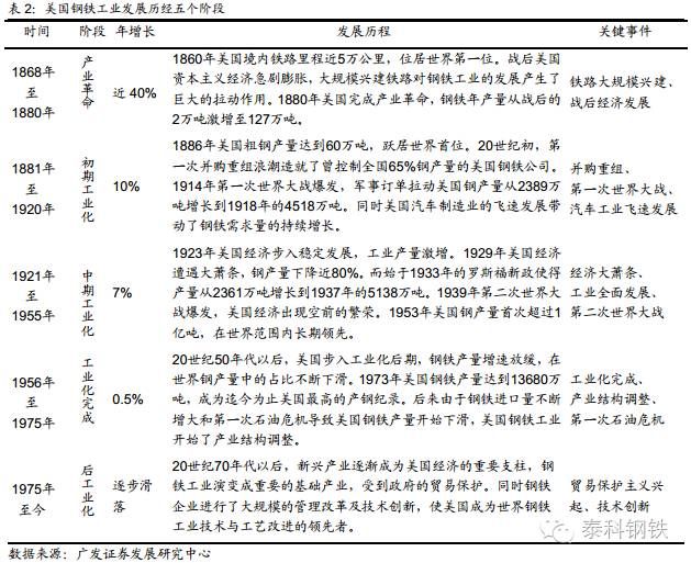 美國鋼鐵業(yè)的發(fā)展大體可分為五個階段: