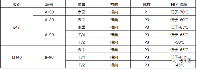 表2 EH40、EH47厚板的 NDT性能結(jié)果