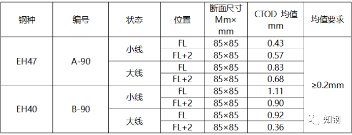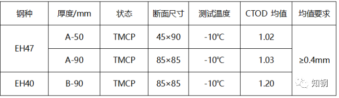 表3 EH40、EH47厚板的CTOD性能