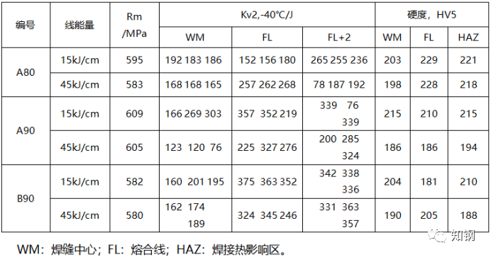 上述焊接性能結(jié)果表明,研制生產(chǎn)的最大厚度為90mm的EH40、EH47止裂鋼具有優(yōu)良的焊接性能,能夠滿足超大型集裝箱船的建造使用要求。
